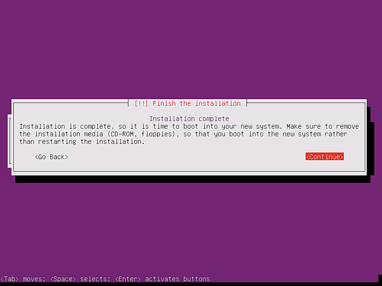 -Congratulations! Installation is completed. You can now remove your DVD or USB flash drive: